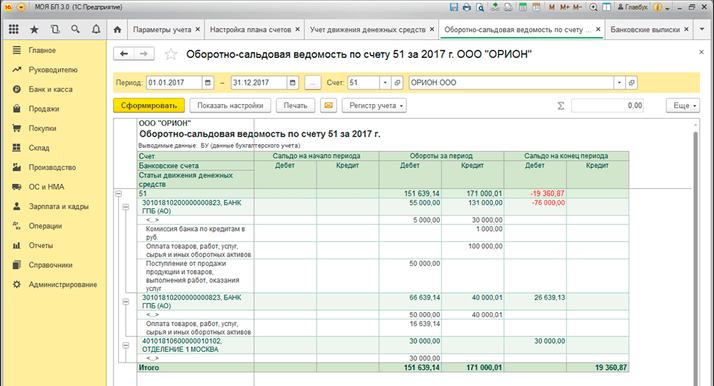 Статьи движения денежных средств и оборотно-сальдовая ведомость
