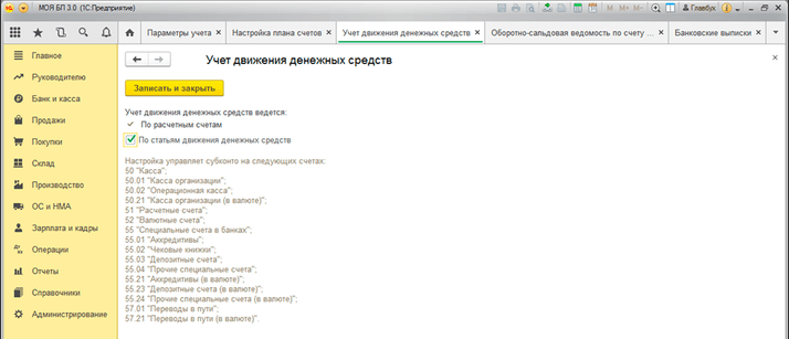 Учёт движения денежных средств в 1С:Бухгалтерии 3.0