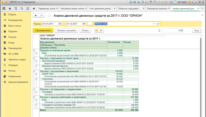 Сохранённые настройки нужны для правильного составления анализа движения денежных средств в программе.
