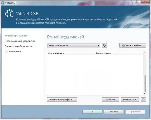 Если VipNet CSP/Validata CSP уже установлен и нет возможности его удалить, можно попробовать так:
