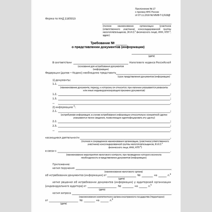 Форма Требования о предоставлении документов (информации)