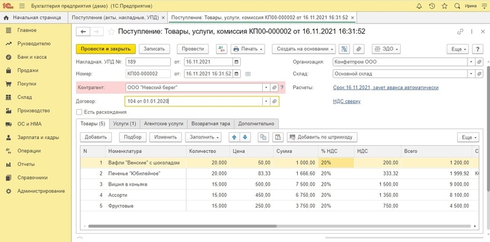 После того как документ будет полностью заполнен, проверен на корректность выполнения, необходимо нажать на кнопку «Провести и закрыть».