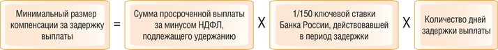 Минимальный размер компенсации за задержку заработной платы установлен ст. 236 ТК РФ и рассчитывается по следующей формуле: