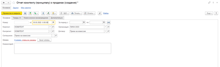 Далее переходим к оформлению отчёта комитенту.