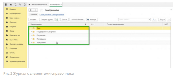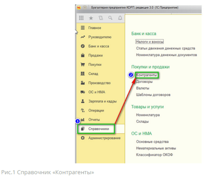 Он расположен по адресу «Справочники» ‒ «Покупки и продажи» ‒ «Контрагенты».