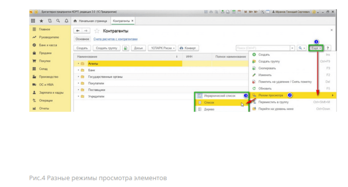 Таким образом, образуется новая группа, которая может объединять нескольких партнеров. Чтобы максимально облегчить себе работу, рекомендуется использовать различные режимы для ознакомления с элементами. Как это сделать: выбираем «Еще», затем в выпадающем перечне «Режим просмотра», там же можно выделить такие способы просмотра элементов: