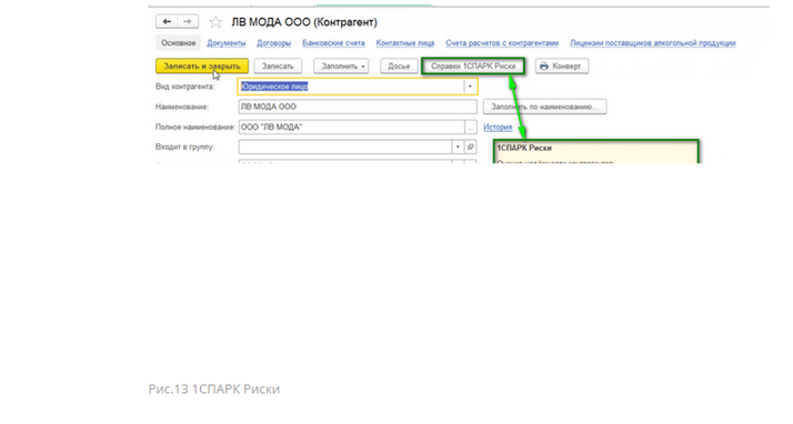 В каждой карточке контрагента присутствует сервис 1СПАРК Риски. Его функционал позволяет показывает все изменения: ежедневно обновляется информация по возможному банкротству или ликвидации; предоставляется информация о намерениях по реорганизации, смене юридического адреса, а также изменения в штате.