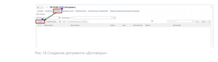 Актуально, что сразу можно сформировать документ «Договоры». Путь «Договоры» ‒ «Создать».