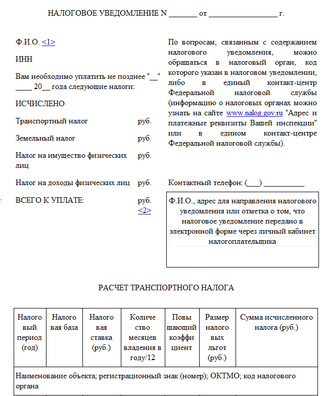В заявлении укажите фамилию, имя, при наличии – отчество. Также уточните дату и место рождения, сведения о документе, удостоверяющем личность, календарный год, за который вы просите выдать уведомление. Вы можете обозначить удобный способ получения налогового уведомления – в налоговом органе либо в МФЦ, через который подавали заявление.