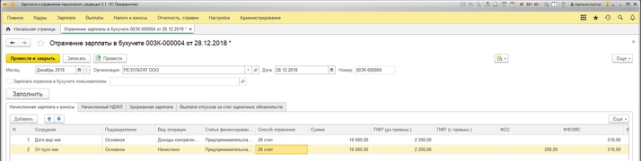 Для того, чтобы по кредиту у нас встал счет 76.10 для учета зарплаты по сотрудникам, работающим по ГПД необходимо в самом документе «Отражение заплаты в бухучете» в поле «Вид операции» поставить «Доходы контрагентов». Вид операции указываем в программе ЗУП 3.1. Далее делаем синхронизацию. Счет дебета настраиваем в бухгалтерской программе в разделе «Зарплата и кадры» подраздел «Справочники и настройки» и далее «Настройки зарплаты» - «Отражение в учете» - «Способы учета зарплаты». Здесь, создавая способы учета, мы задаем только счет по дебету.