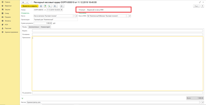 Внести разменные денежные средства в кассу кассир может только по распоряжению расходного кассового ордера, который оформил старший кассир или администратор магазина заранее.