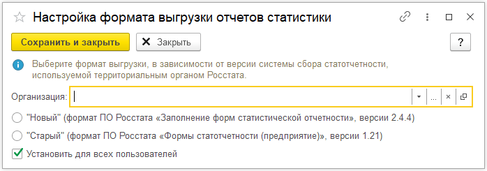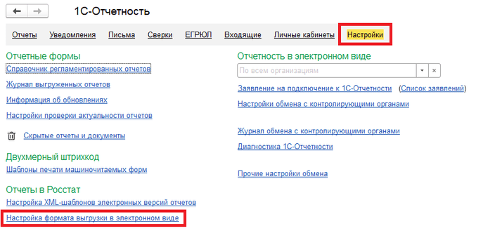 Чтобы исправить выбранный формат статистической отчетности, переходим в регламентированной отчетности (раздел Отчеты - Регламентированные отчеты) на ссылку «Настройки» и по ссылке «Настройка формата выгрузки в электронном формате». В открывшемся окне выбираем необходимый формат для выгрузки. При следующей выгрузке уже будет выгружен новый формат.