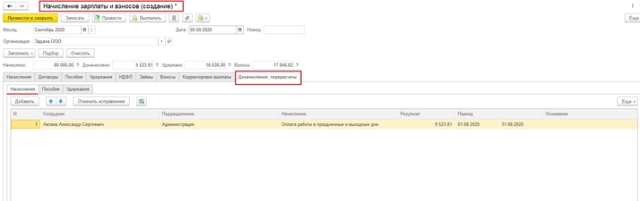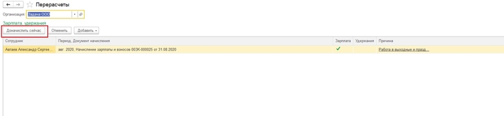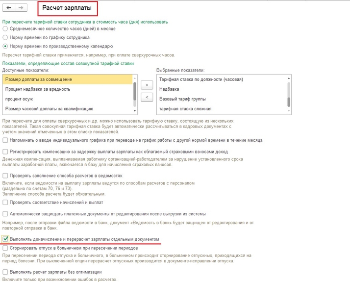 В программе 1С:Зарплата и управление персоналом, есть два способа, где может отразиться перерасчет прошлого периода. Все зависит от настроек программы. Если в разделе «Настройка» - «Расчет зарплаты» - стоит галочка «Выполнять доначисление и перерасчет отдельным документом» (рис.1), то перерасчет будет отражаться в разделе «Зарплата» - «Сервис» - «Перерасчеты» и по кнопке «Доначислить сейчас» (рис.2), будет создан отдельный документ с перерасчетом. Если галочки нет, то перерасчет будет отражен в документе «Начисление зарплаты и взносов» на вкладке «Доначисления и перерасчет» (рис.3).