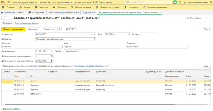 Обращаем внимание, мероприятия, не отраженные в принятом СЗВ-ТД выделены серым цветом.