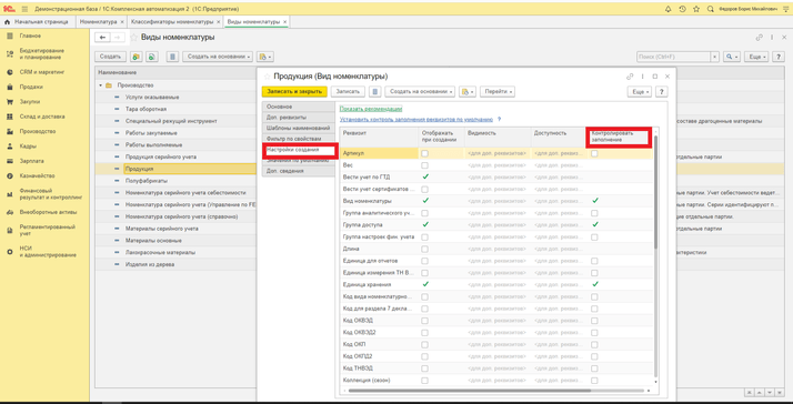 Раздел «НСИ и администрирование” - Настройка НСИ и разделов - Номенклатура - Настройки создания – поставить флажок “Контроль уникальности рабочего наименования номенклатуры и характеристик.”