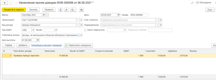 После пересчитайте сотрудника в документе «Прочие доходы». Удержание будет произведено.