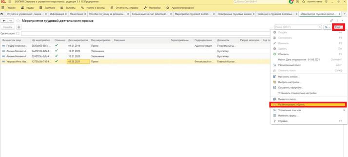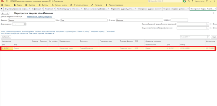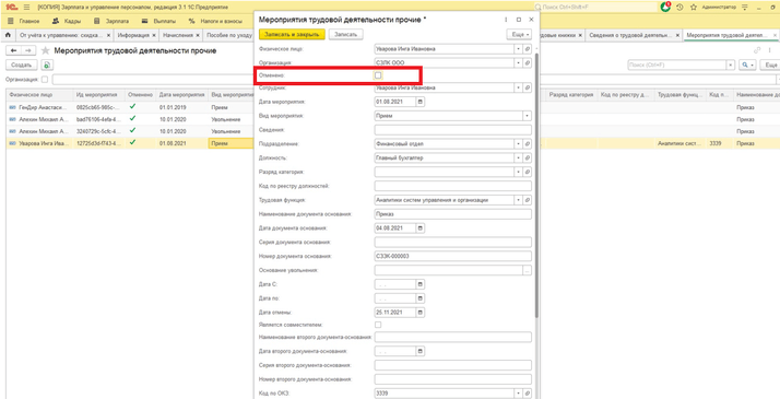 После заново заполняем «СЗВ-ТД» отмененного мероприятия не будет в списке.