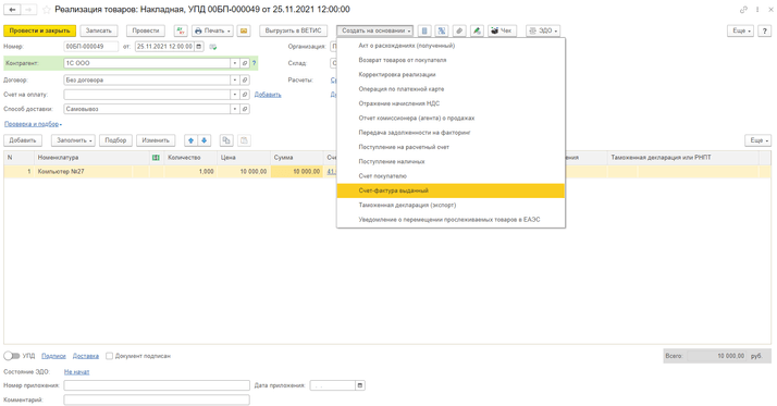 4) Из документа «Счет-фактура» можно сформировать «УПД» – графа 5 будет заполнена рис.4-5;