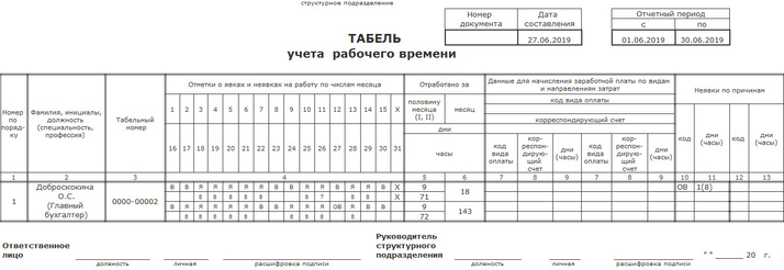 В табеле можно увидеть отражение вида времени.