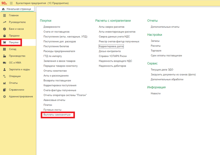 В программе 1С:Бухгалтерия предприятия ред. 3.0 для работы с самозанытыми предусмотрены следующие настройки: