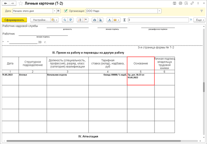 В личной карточке сотрудника по форме № Т-2 в качестве основания приема на работу также будут указаны реквизиты трудового договора.