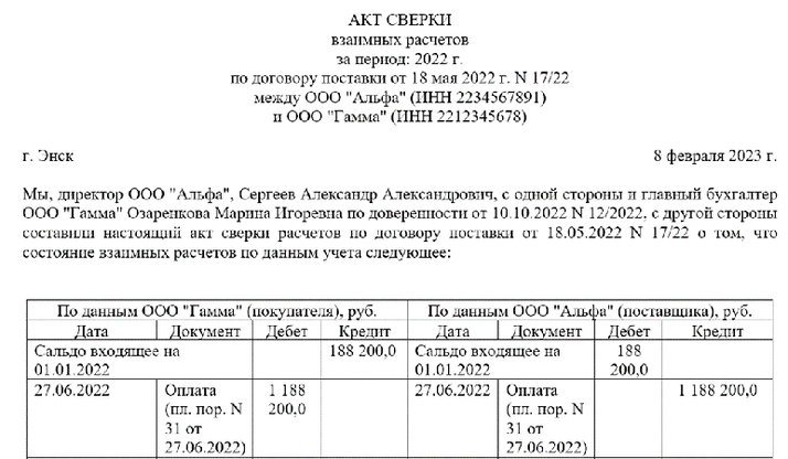 Готовый образец акта сверки