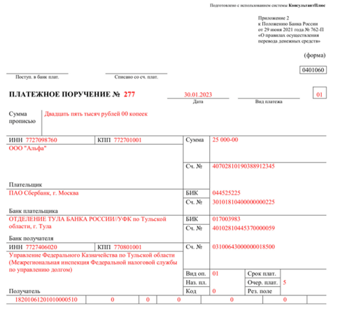 Образец заполнения платежки