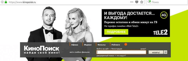 Пример рекламы на сайте kinopoisk.ru показали на скриншоте.