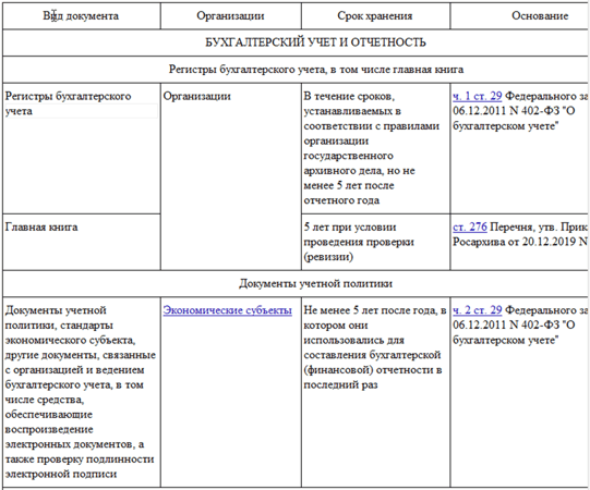 Архивные документы. Те документы, которые входят в Перечень типовых управленческих архивных документов или в Перечень типовых архивных документов по НИОКР с определенными сроками хранения. Например, документы о создании организации, бухгалтерские документы и пр. (ч. 3 ст. 6 ФЗ от 22.10.2004 № 125-ФЗ «Об архивном деле в Российской Федерации»).