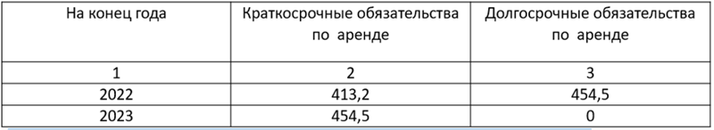 Соответственно, на конец 2023 г. вся сумма непогашенного обязательства по аренде (454,5) становится краткосрочной, так как подлежит погашению в 2024 г.