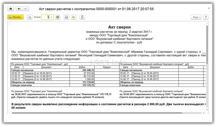 После того, как наше предприятие получило подписанные ответные данные, сверка считается согласованной. Это справедливо и в том случае, когда есть расхождения в данных.