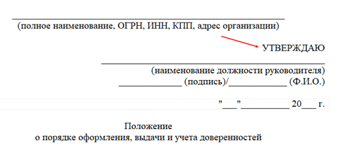 Требований к содержанию положения законодательство не содержит. В нем можно определить этапы работы с доверенностью от подготовки текста до уничтожения документа, ответственных сотрудников, установить порядок и сроки их действий на каждом этапе.
