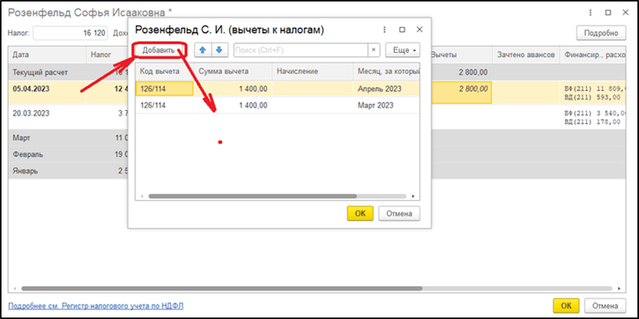 Чтобы обойти ошибку, нужно переместить вычеты из месяца выплаты аванса в месяц выплаты окончательной зарплаты. Рассмотрим это на конкретном примере.