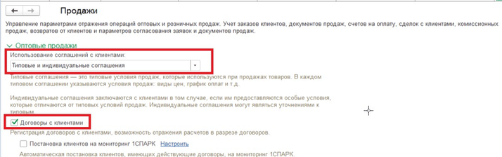 Там нужно включить «Использование соглашений с клиентами» и «Договоры с клиентами» (рис. 2).