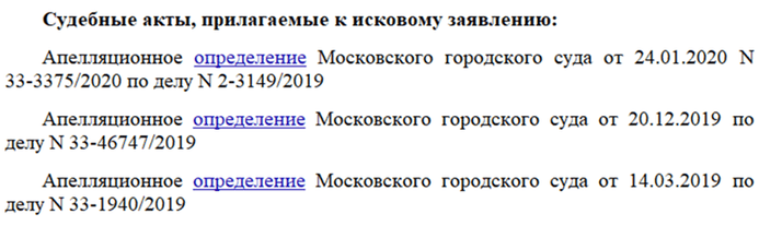 Дополнительным бонусом к иску было то, что в нем содержались ссылки на судебные решения Московского городского суда. Их можно указать в иске, подтвердив этим свою позицию.