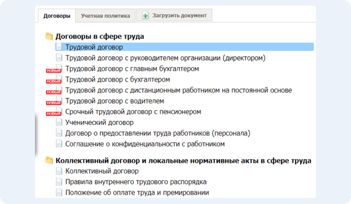 Выбираете нужный трудовой договор. В Конструкторе есть разные (с руководителем или главным бухгалтером, обычным работником или дистанционным и другие). Конструктор покажет все возможные условия, которые можно включить или не включать в договор. Вам останется только выбрать, поставив галочку.