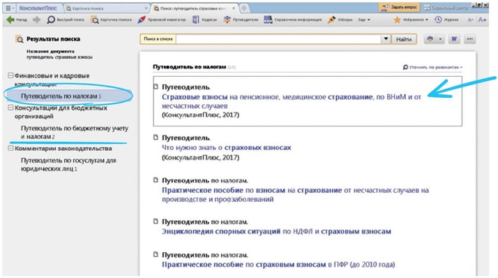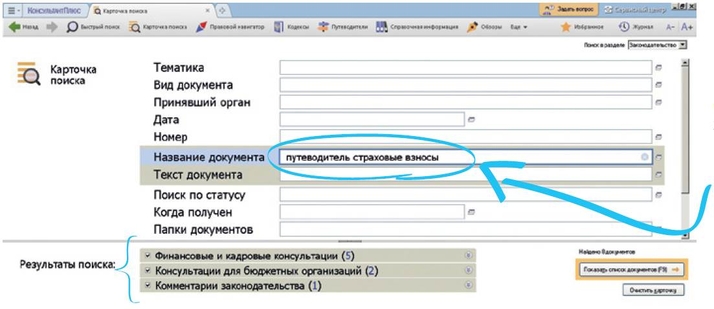 В поле «Название документа» вводим «путеводитель страховые взносы».