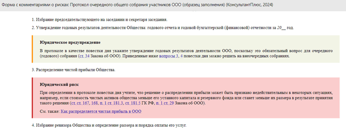 Таким образом, дополнительные сервисы СПС КонсультантПлюс предоставляют доступ к грамотно составленным образцам заполнения документов. В качестве наглядных примечаний к документу дают юридические и налоговые предупреждения, описывают риски и представляют рекомендации. Формы с комментариями о рисках по налогам и кадрам