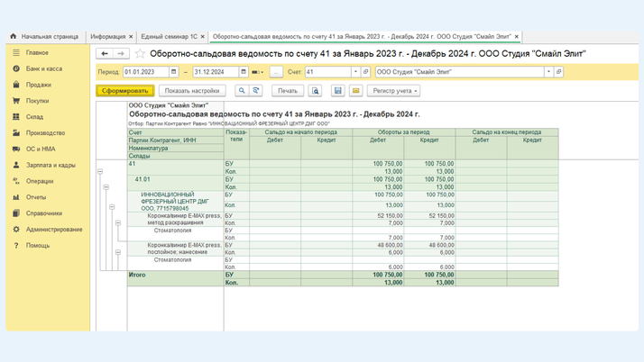 Остальные вкладки настраиваются по необходимости. Сформируем ОСВ.