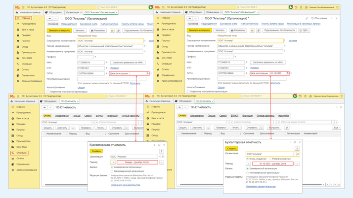 В случае если первый отчетный период охватывает год, следующий за годом регистрации, дату регистрации необходимо указать в справочнике. Это важно для корректного расчета и формирования отчетности.