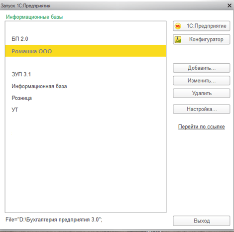 - Запускаем базу 1С нашей организации Ромашка ООО.