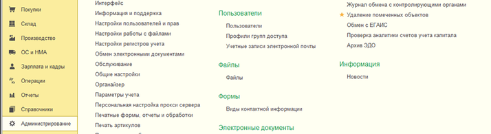 Сделаем этот шаг с помощью отдельной служебной обработки «Удаление помеченных объектов». Её мы найдём в разделе «Администрирование».