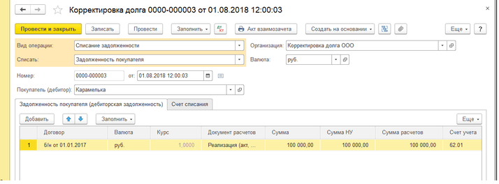 - Бухгалтеру периодически приходится списывать безнадёжные долги – третий вариант применения «Корректировки долга».