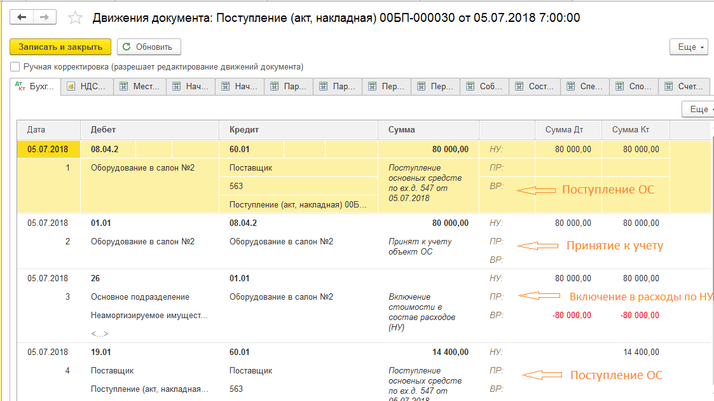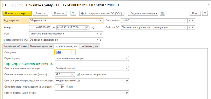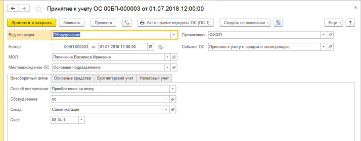 2-й способ: с использованием одного документа «Поступление основных средств».