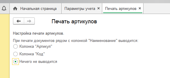 - Пользователь также может самостоятельно выбирать, выводить на печать артикулы в документах или нет (раздел «Печать артикулов») (рис. 7).