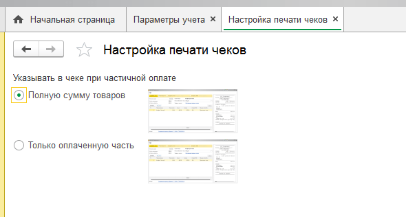 - На новых релизах разработчиками 1С также заложена настройка печати чеков при частичной оплате. Поэтому не поленитесь заглянуть в группу «Настройка печати чеков» (рис. 8).