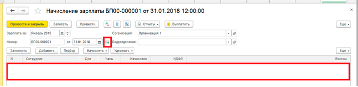 «Начисление заработной платы» одна из немногих операций, которую бухгалтер формирует самостоятельно при помощи одноимённого документа. В обработку закрытия месяца эта строка попадает автоматически. Следует помнить, что если в текущем месяце все сотрудники находятся в отпуске за свой счёт и бухгалтер намеренно не заполнил документ «Начисление зарплаты и взносов», при запуске обработки «Закрытие месяца» программа сама создаст этот документ и начислит всем сотрудникам зарплату и налоги в соответствии с кадровыми документами. Чтобы такого не произошло, нужно самостоятельно провести пустой документ по начислению зарплаты. Если же мы по какой-то причине забыли это сделать, необходимо зайти в созданный программой документ «Начисление зарплаты и взносов» и очистить табличную часть документа, сохранить изменения и заново приступить к закрытию месяца (рис. 2).