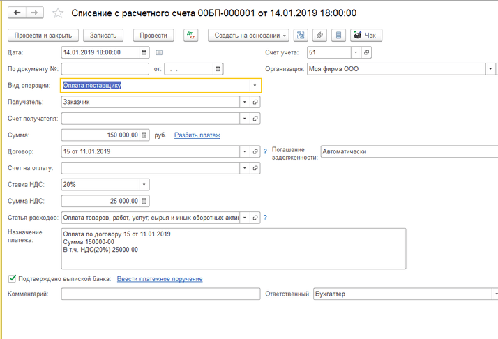 - оплату поставщику;