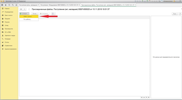 Прикрепление скана договора с контрагентом к первичному документу учёта