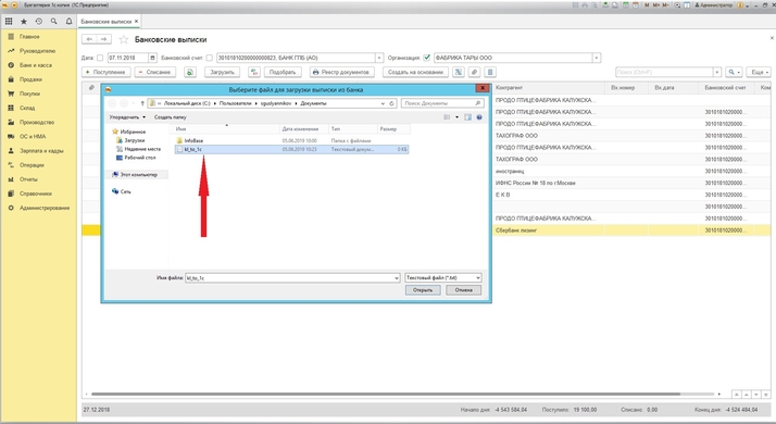 Файл обмена с банком формата *.txt, содержащий данные по движениям по счёту при загрузке в 1С